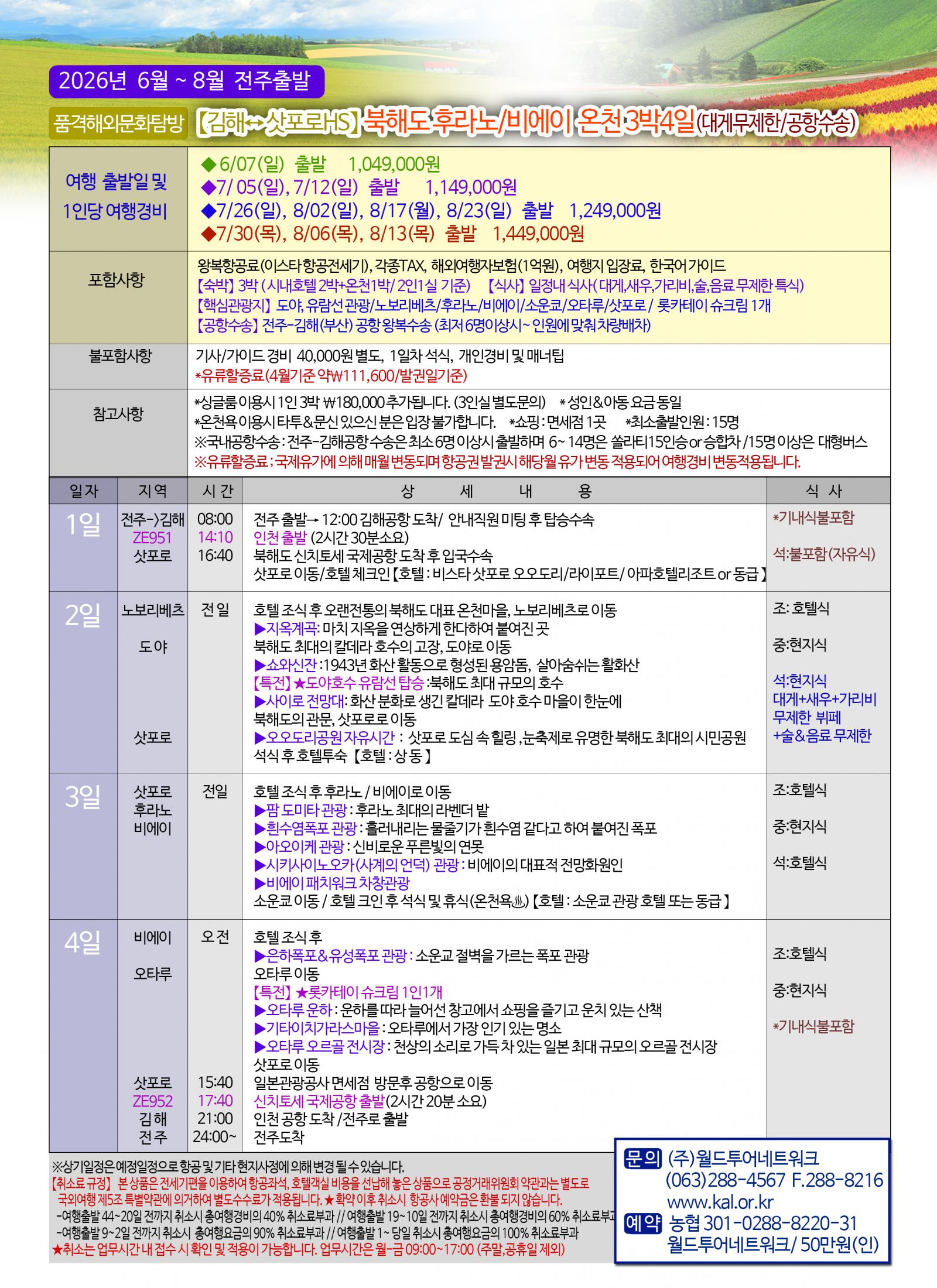 -여행출발 1~ 당일 취소시 총여행요금의 100% 취소료부과